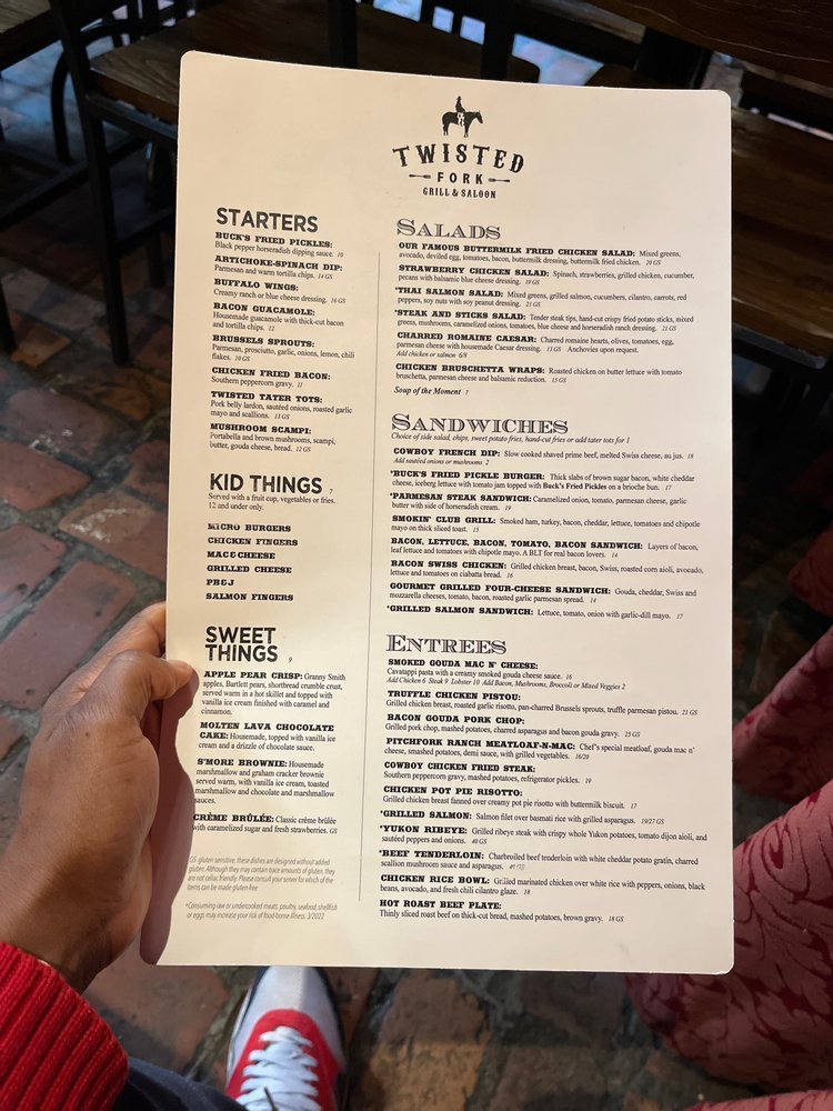 Introducing Twisted Fork Grill and Bar, a vibrant American bar in Omaha, NE, offering a myriad of delicious dishes and a cozy atmosphere for all to enjoy. The menu boasts a variety of starters like Bacon Guacamole and Chicken Fried Bacon, enticing entrees such as Bacon Gouda Pork Chop and Chicken Pot Pie Risotto, and refreshing salads like Charred Romaine Caesar and Buttermilk Fried Chicken Salad. The incorporation of unique ingredients like prosciutto, gouda gravy, and black beans adds a twist to traditional American fare. With options for vegetarians and a range of utilities including delivery and outdoor seating, Twisted Fork caters to diverse preferences. Boasting happy hour specials and a full bar, this spot is perfect for a night out with friends or a casual lunch. Make a reservation or order takeout to experience the innovative flavors at Twisted Fork Grill and Bar.